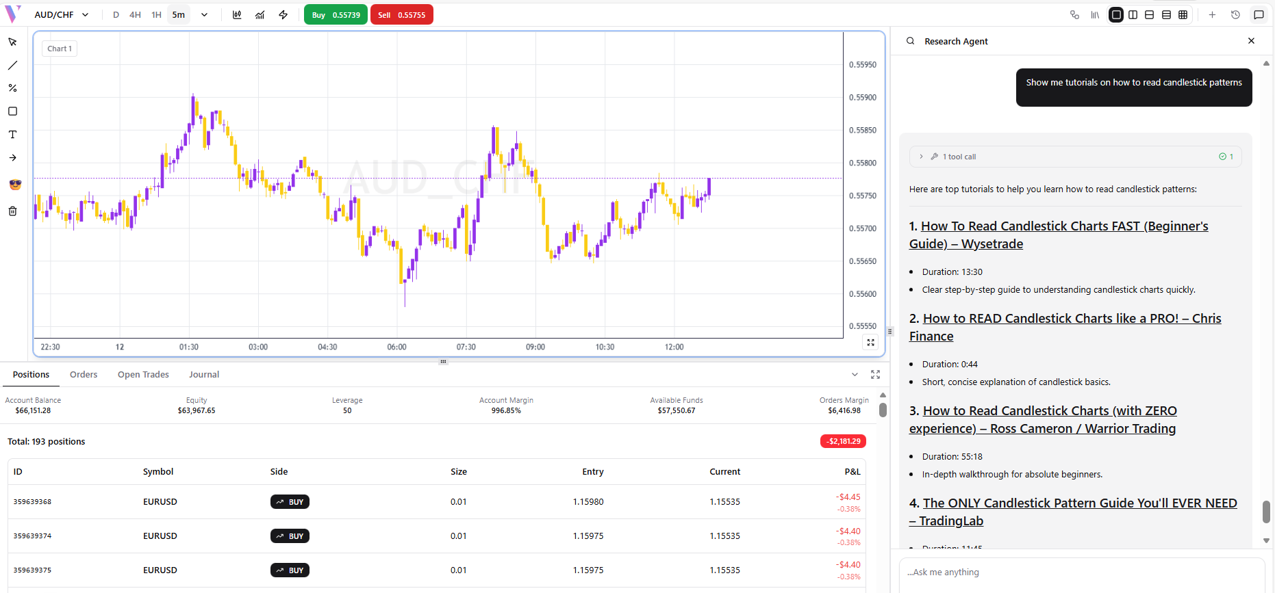 **Prompt:** "Show me tutorials on how to read candlestick patterns" **What You Get:** YouTube video recommendations with thumbnails and expert commentary.