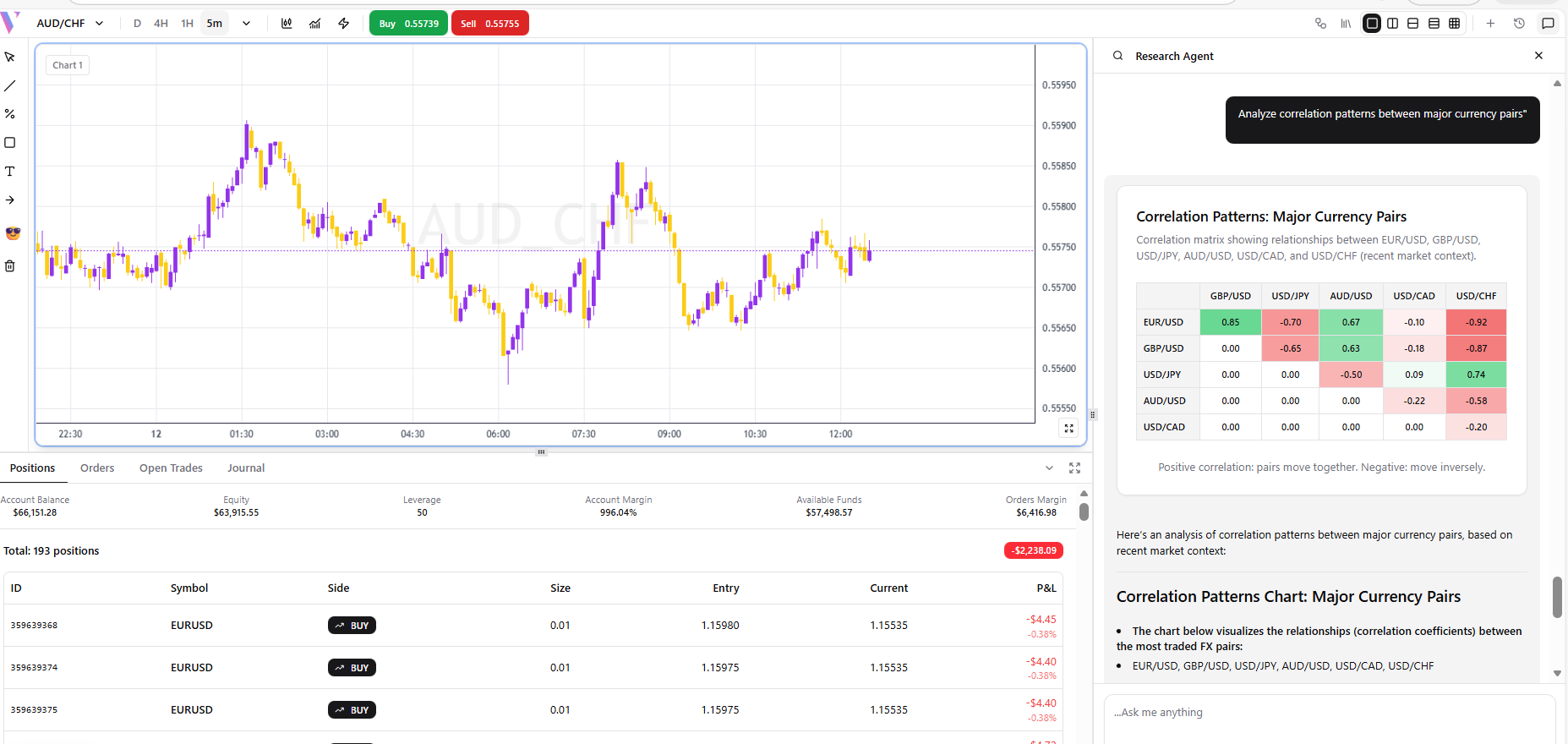 **Prompt:** "Analyze correlation patterns between major currency pairs" **What You Get:** Cross-pair correlation research with historical data.