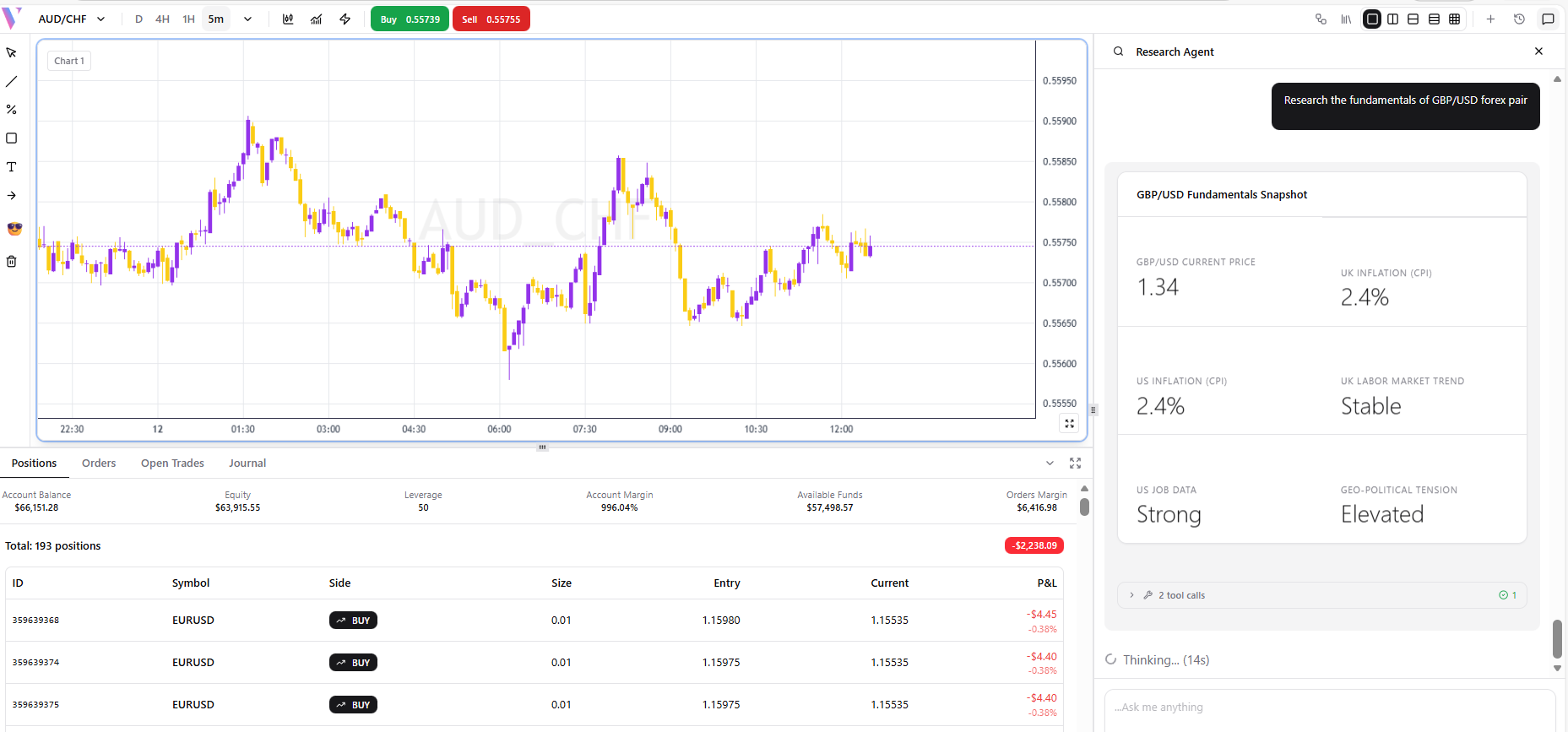 **Prompt:** "Research the fundamentals of GBP/USD forex pair" **What You Get:** Analysis of UK/US economic drivers, interest rate differentials, and political factors.