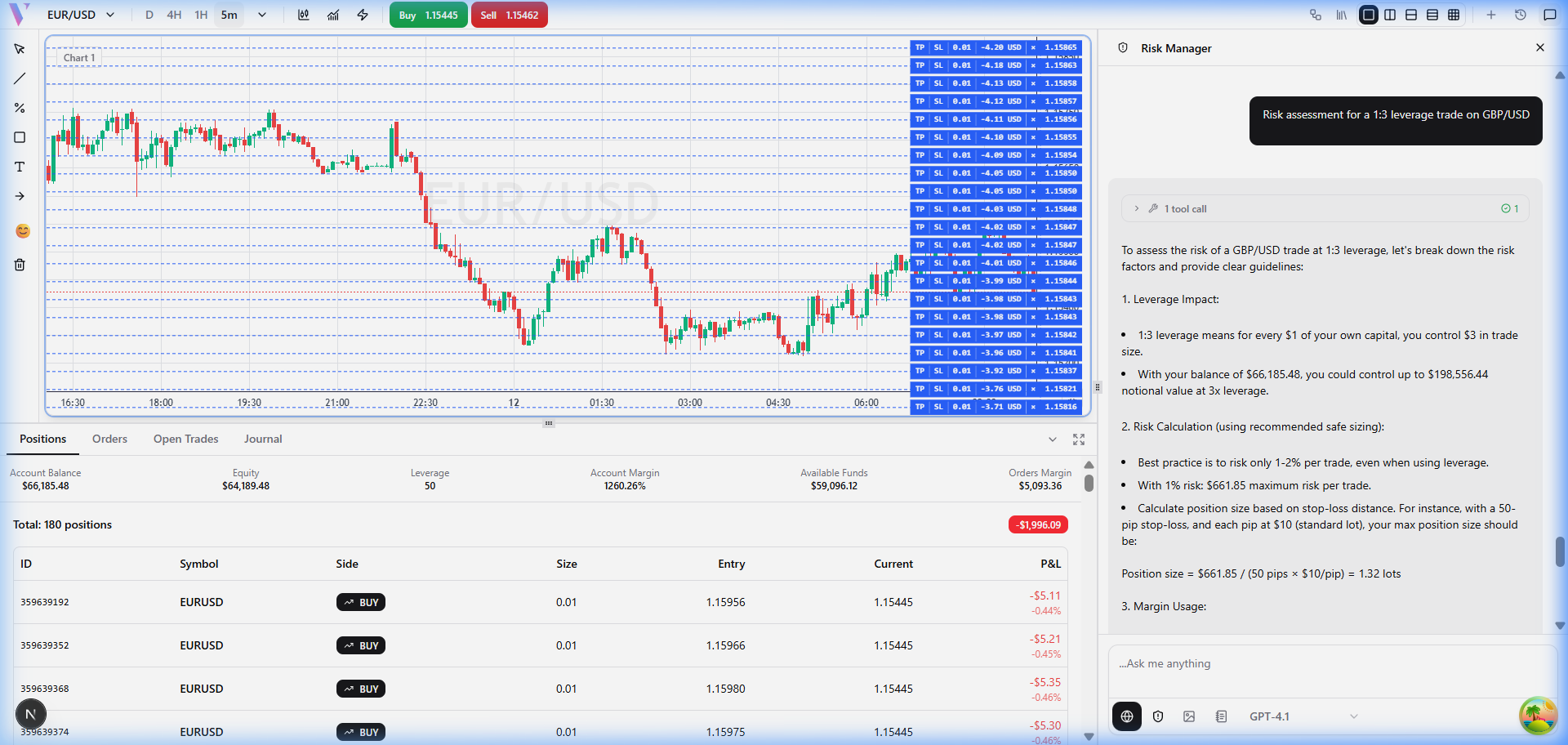 **Prompt:** "Risk assessment for a 1:3 leverage trade on GBP/USD" **What You Get:** A detailed risk/reward scenario analysis.