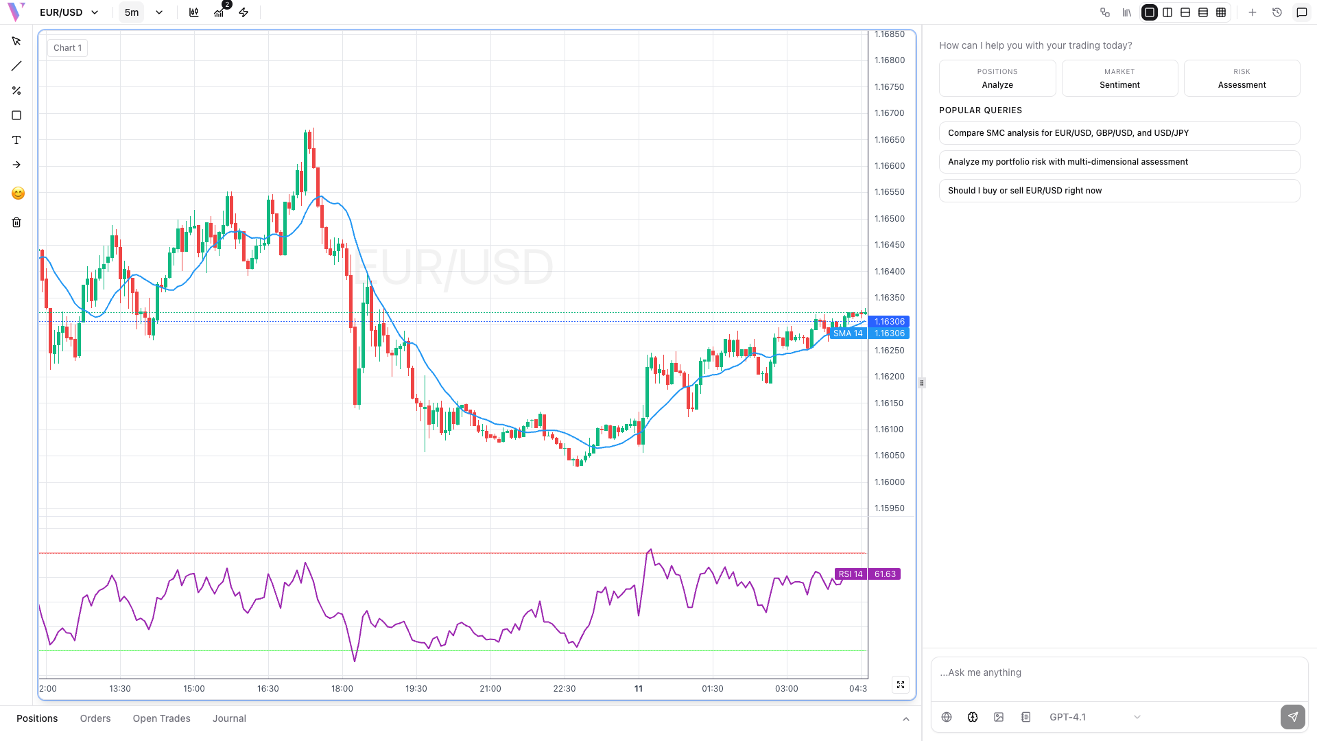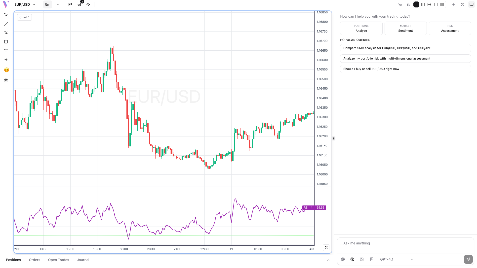 Choose from popular indicators like RSI for momentum, Moving Averages for trends, or Bollinger Bands for volatility analysis.
